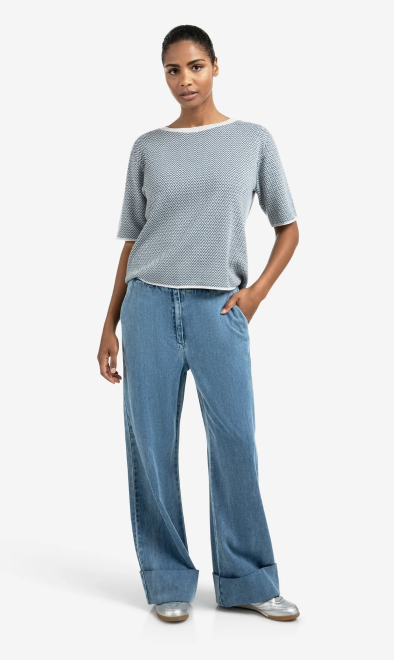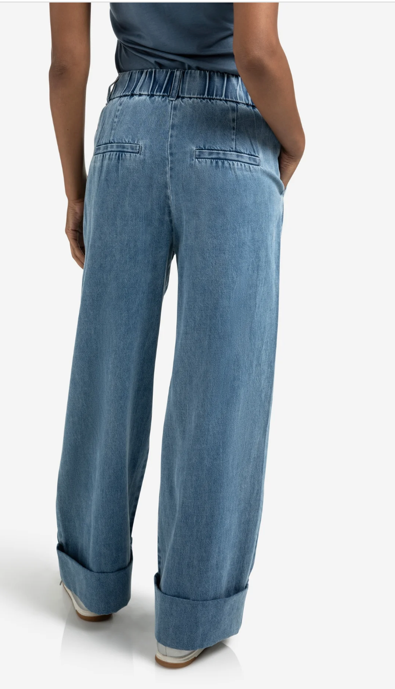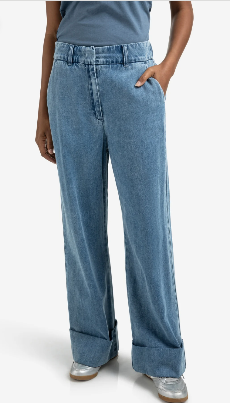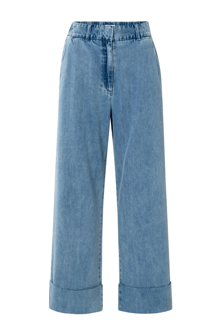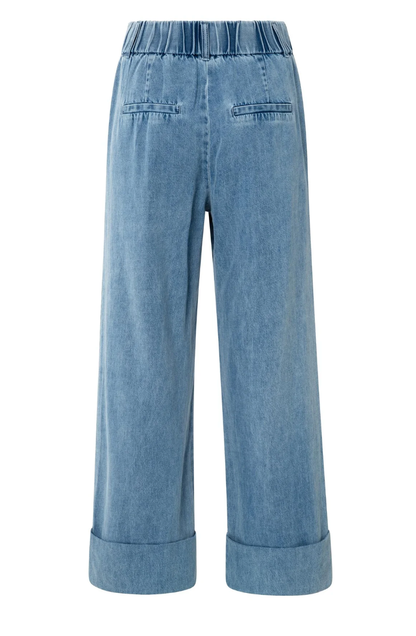 Regular price €115.00 Save 0%Yaya Blue Denim Straight Leg Turn Up Jeans With Elasticated Waistband.
