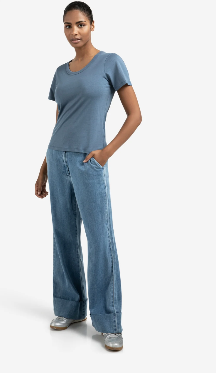 Blue Denim Wide Leg Jeans